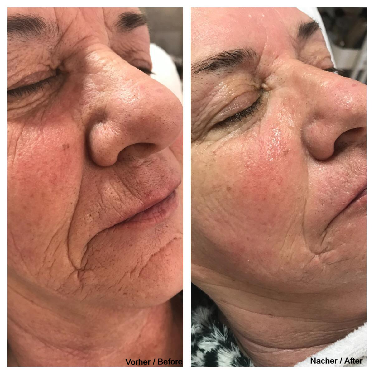 Falten: Die Tiefe wird deutlich verringert. Feine Falten verschwinden.
